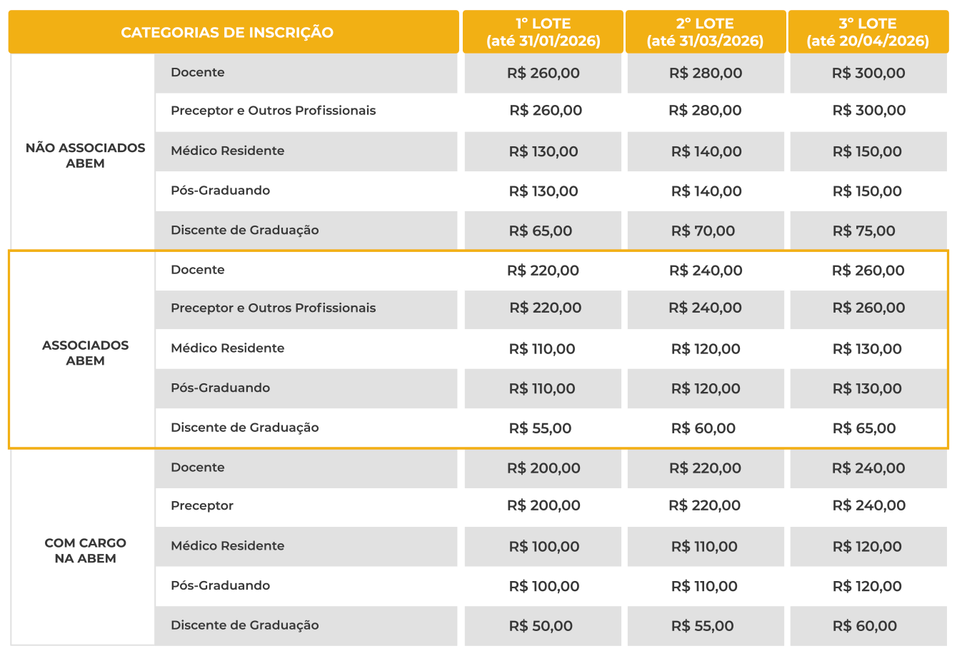 A inscrição pela modalidade de Pacote de Inscrições estará disponível a partir do 2º LOTE (01/02/2026).
